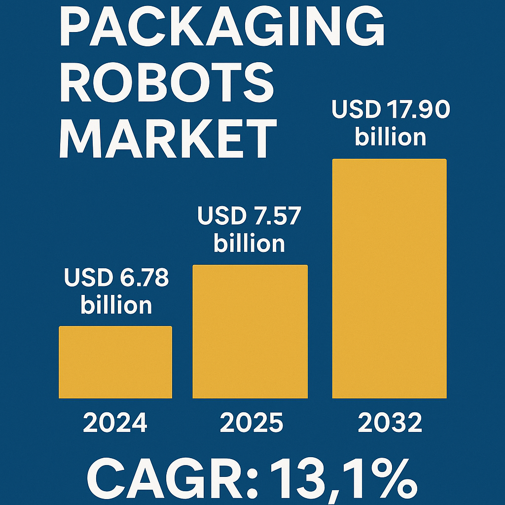 글로벌 포장 로봇 산업 규모는 2024년에 67억 8천만 달러로 평가되었습니다. 이 산업은 2025년 75억 7천만 달러에서 2032년 179억 달러로 성장할 것으로 예상되며, 예측 기간 동안 13.1%의 CAGR을 보일 것입니다.